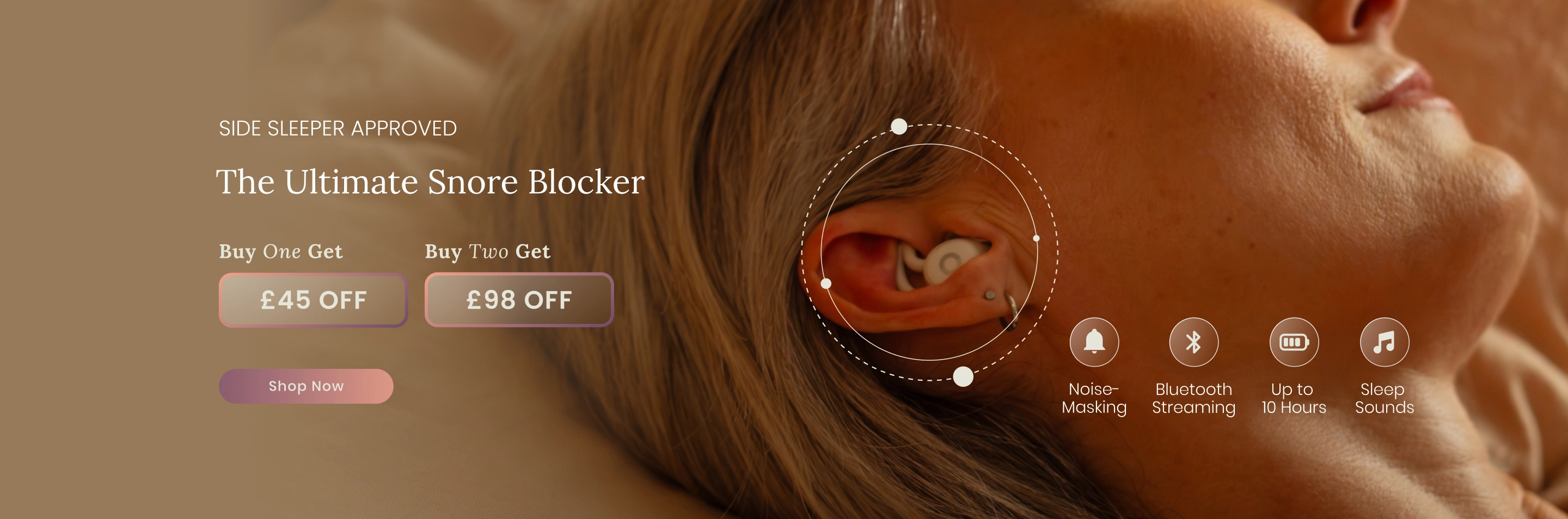 Enjoy up to 10 hours of noise-blocking comfort every night. For a limited time, get £45 off Ozlo Sleepbuds®—your key to uninterrupted, restorative rest, wherever you go.